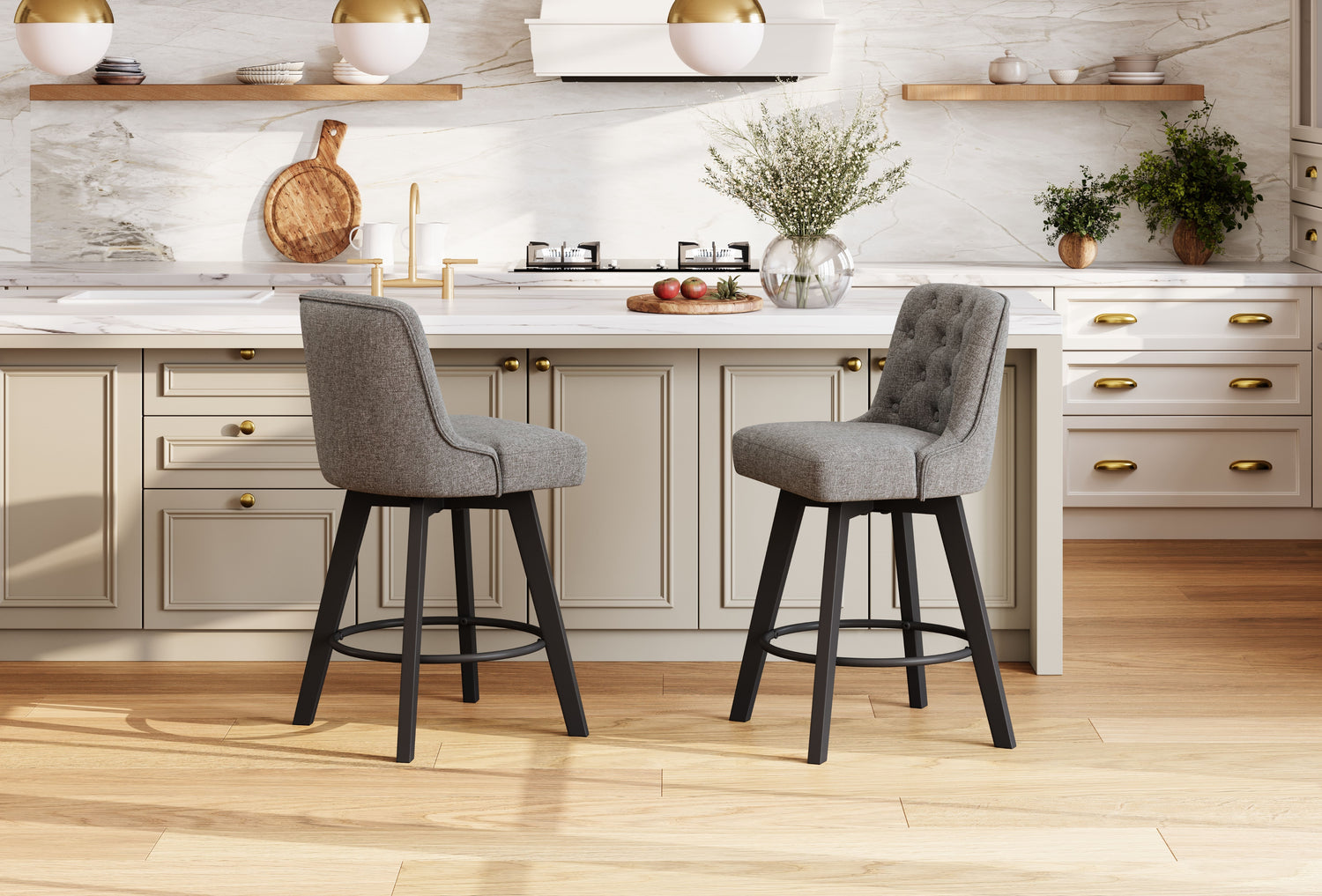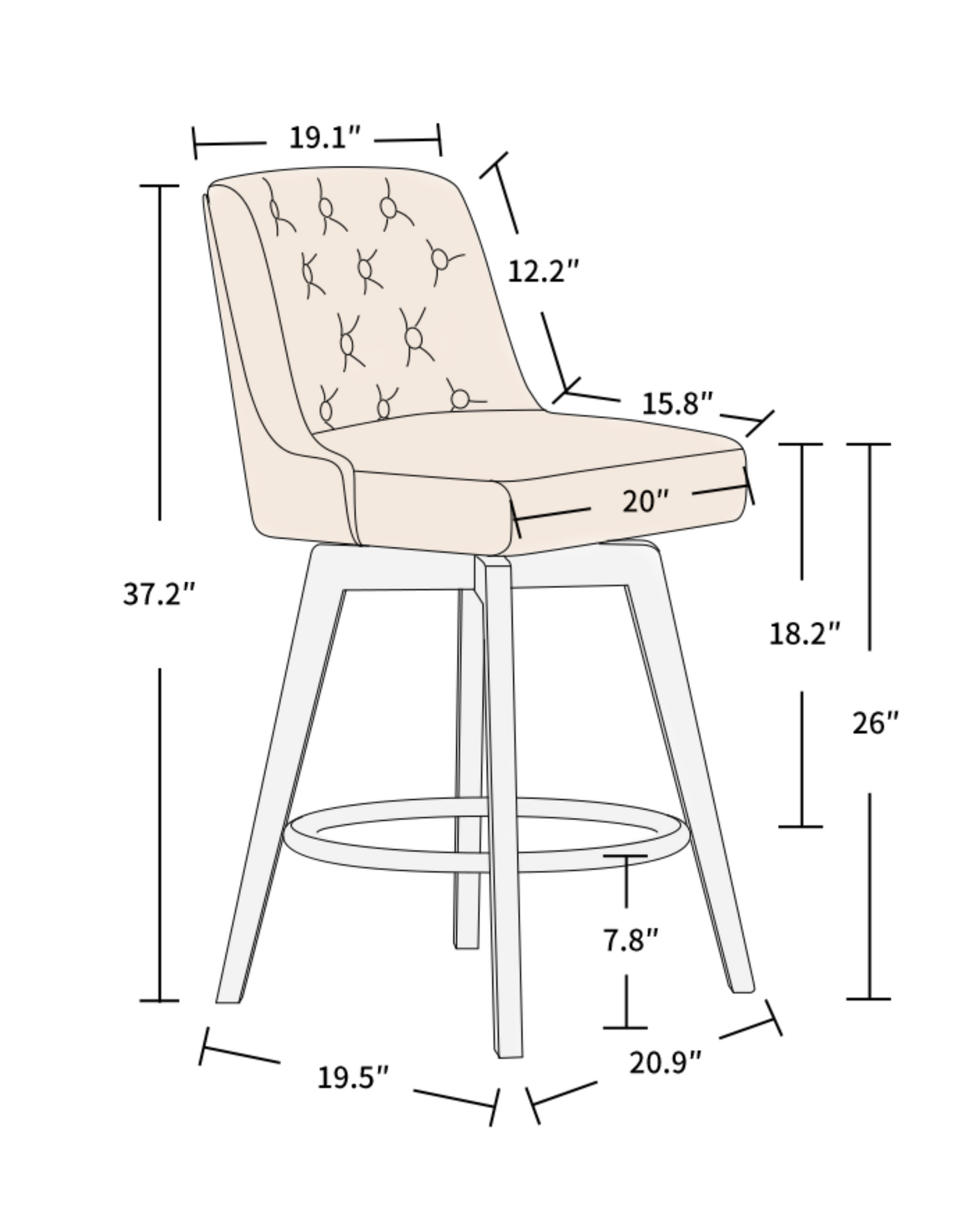 Turn your day around. A total modern farmhouse dream seat, our Counter Stool designed with deep button-tufted,it's simple and elegant with classic styling for the perfect addition to a dining or kithcen area. With a padded seat, along with 360-degree swivel plate and wood footrest, it helps you lean into small talk or deep into conversation with confidence. Cheers to that.