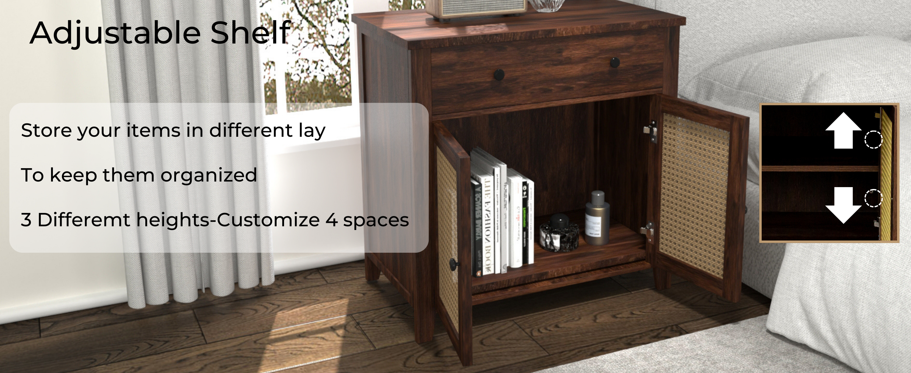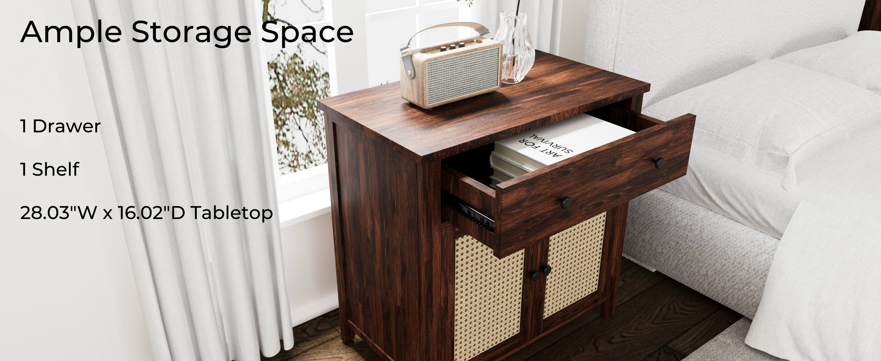 - Dual design of sliding drawer and door allows you to choose the placement space freely;